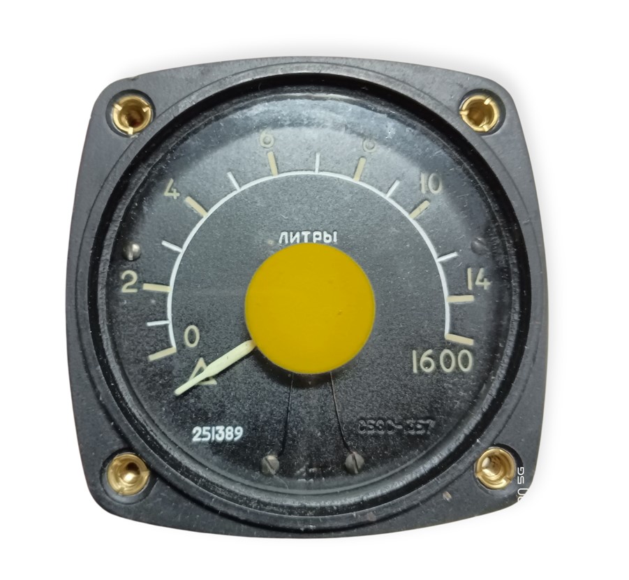 LOTNICZY WSKAŹNIK ILOŚCI PALIWA ZSRR 0 –1600 L – ORYGINALNY MIERNIK POKŁADOWY