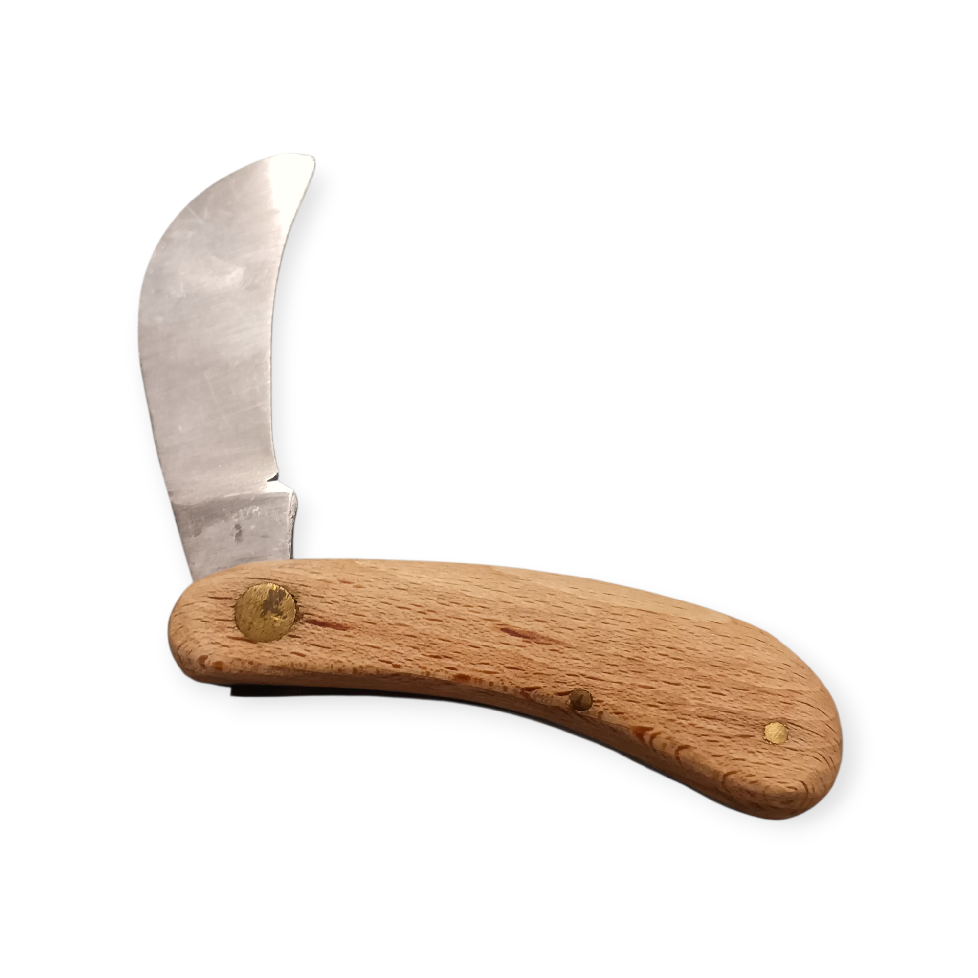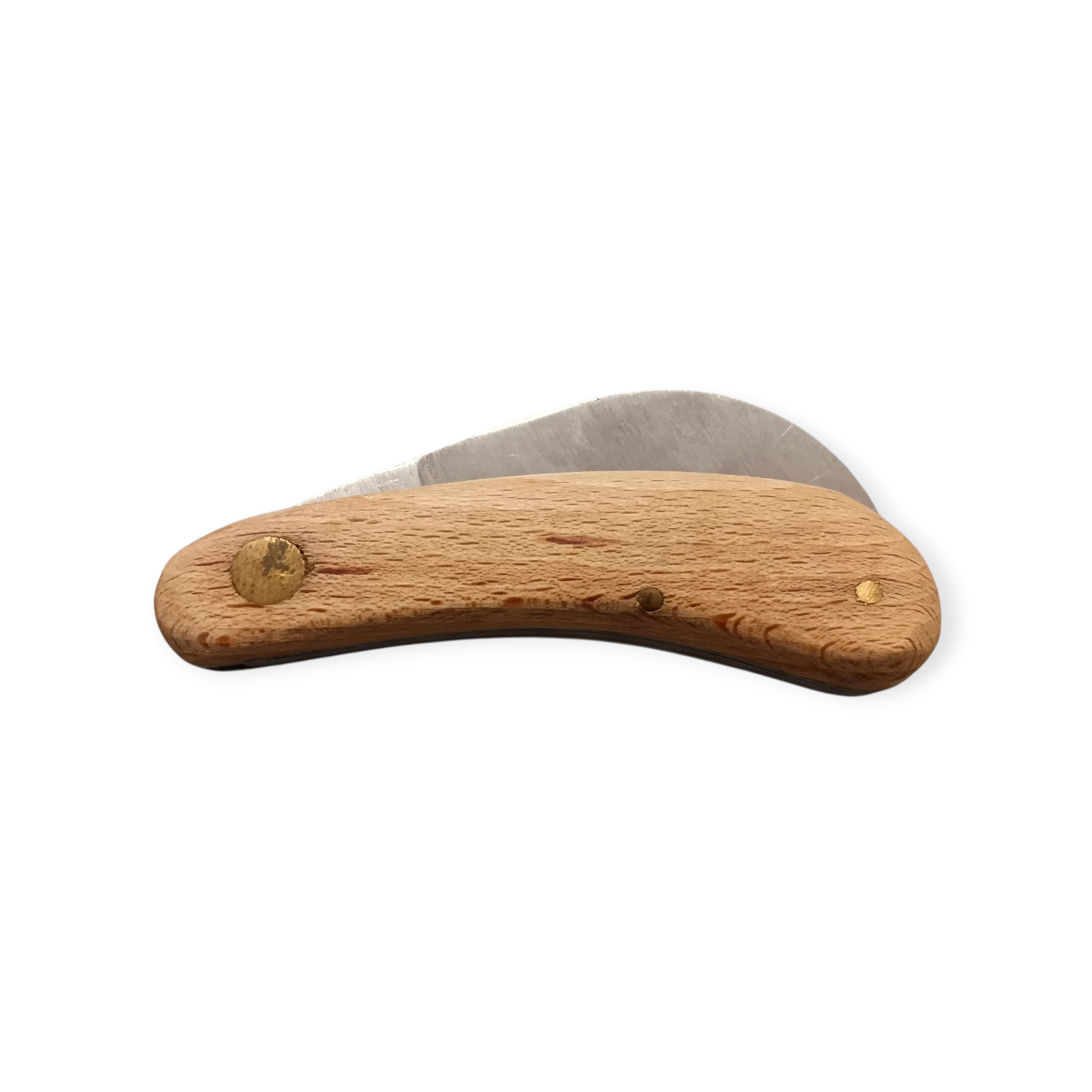 Ostrze o charakterystycznym, zakrzywionym profilu sprawdzi się przy precyzyjnym krojeniu, a ergonomiczna drewniana rękojeść zapewnia pewny i wygodny chwyt.