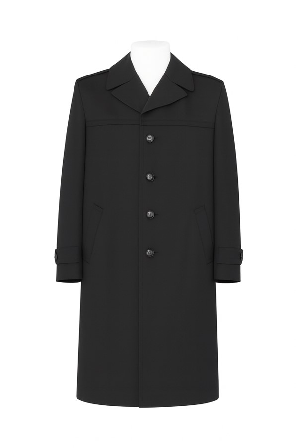 - Jednorzędowy krój. Płaszcz ma klasyczny jednorzędowy krój. Zapięcie na guziki.
